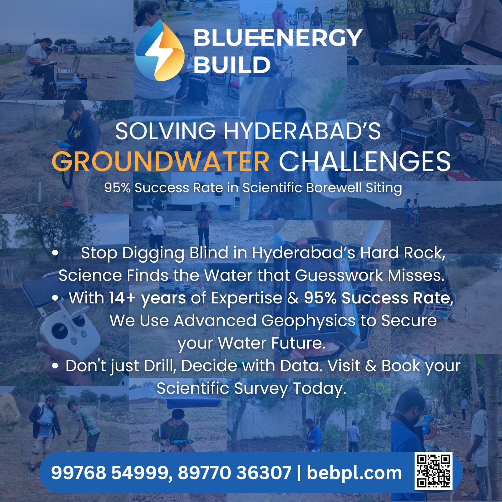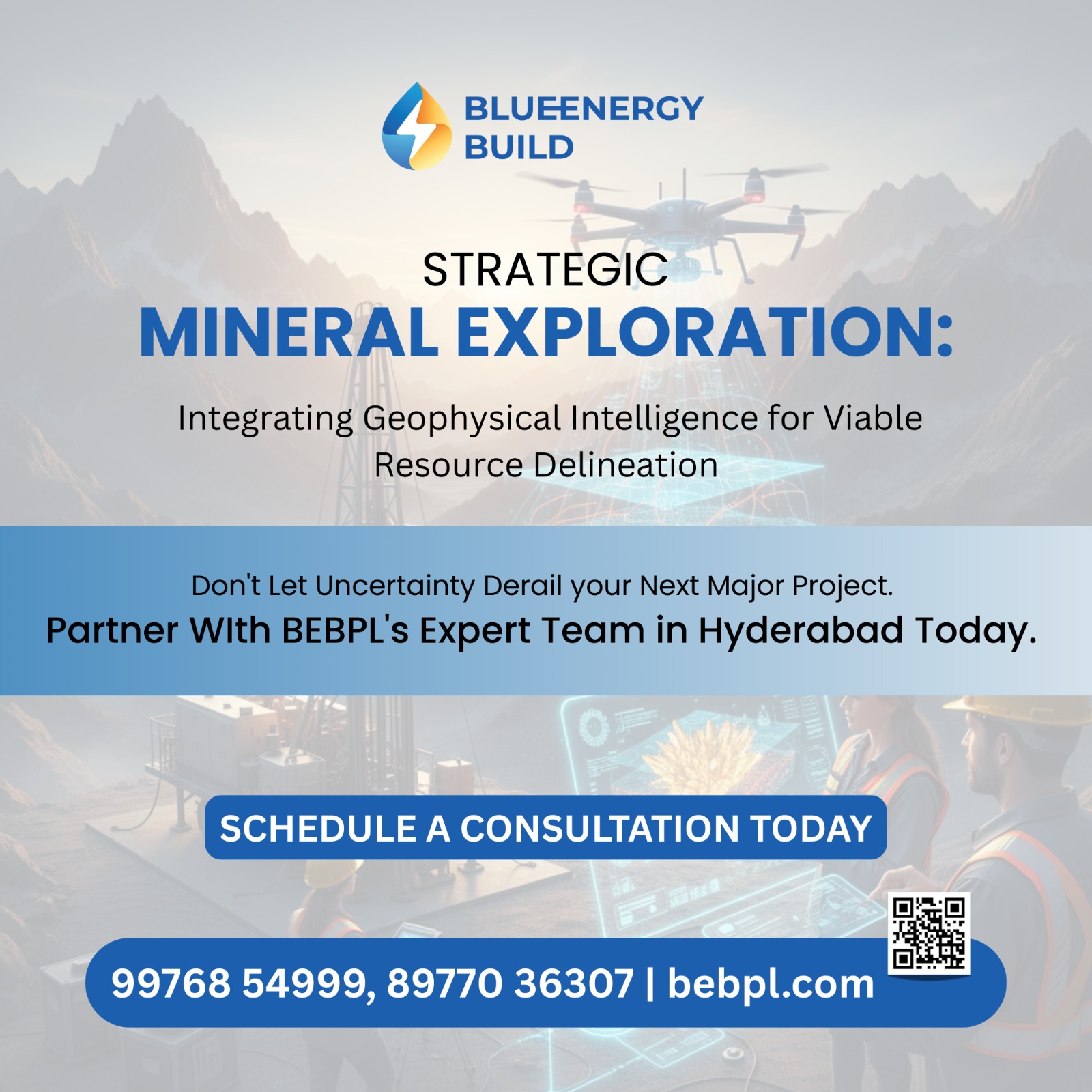 BlueEnergy Build Private Limited (BEBPL) is a leader in survey, investigations, and sustainable solutions for the water, mineral, and construction sectors. BEBPL uses advanced topographical, hydrological, geological, and geophysical methods, including Remote Sensing & GIS, to drive towards a sustainable future. The company offers a comprehensive range of services, including Water Management Plans, Groundwater Exploration, Mineral Exploration, Geotechnical Surveys (like GPR), and Environmental Impact Assessment (EIA) Studies, aiming to unlock the Earth’s potential and ensure resources are managed wisely and responsibly for a positive impact.