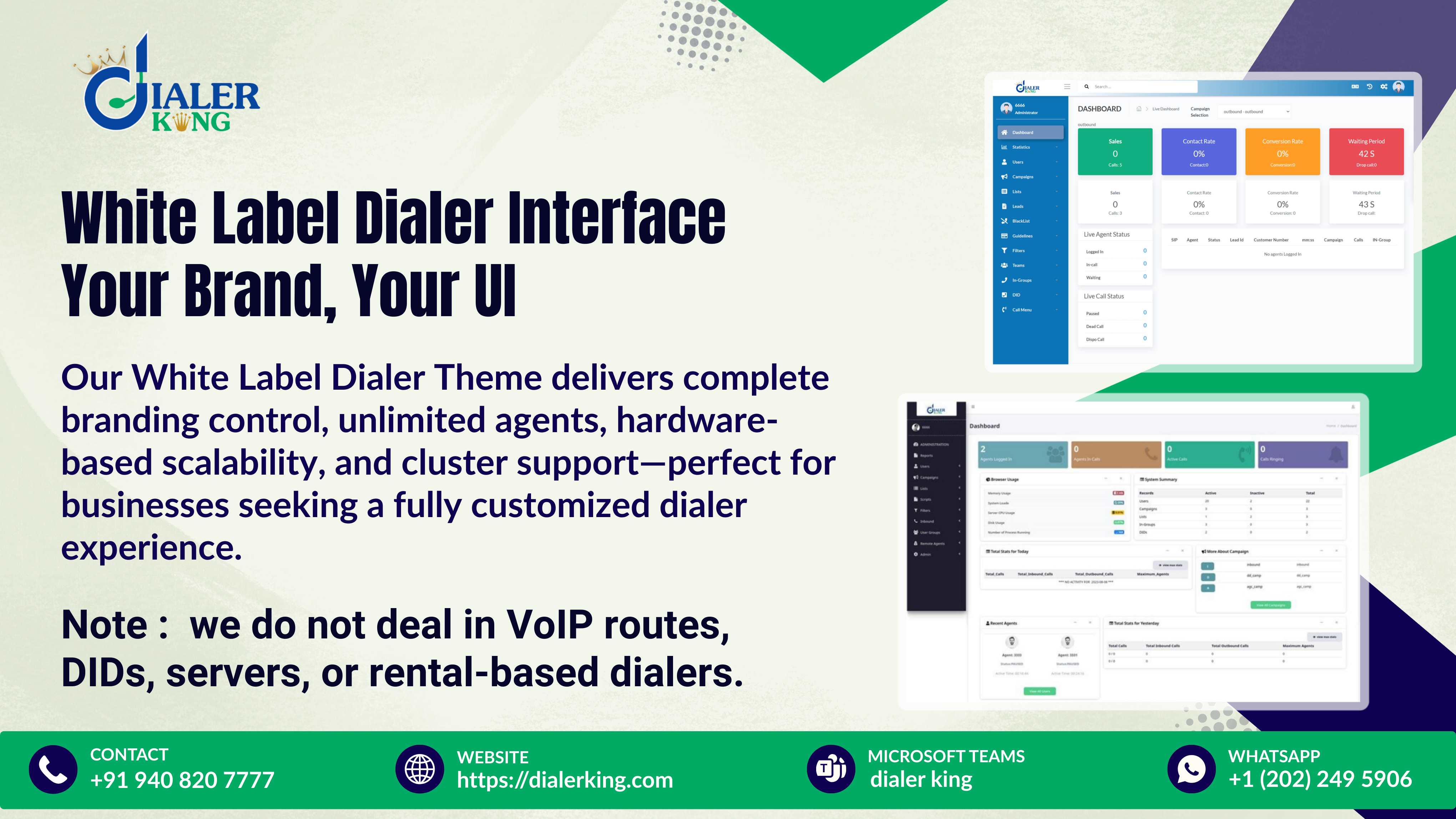 Is your team still using a dialer interface that looks like everyone else’s? At DialerKing, we don’t just provide world-class communication tools—we give you the keys to make them your own.