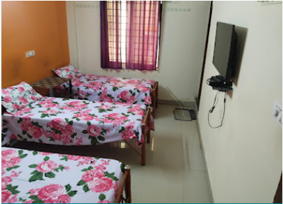 Flexible dining options are available with food and without food choices. For residents opting for meals, three times daily food is provided. Common areas include a TV for entertainment, a refrigerator for food storage, and power backup to ensure uninterrupted comfort.