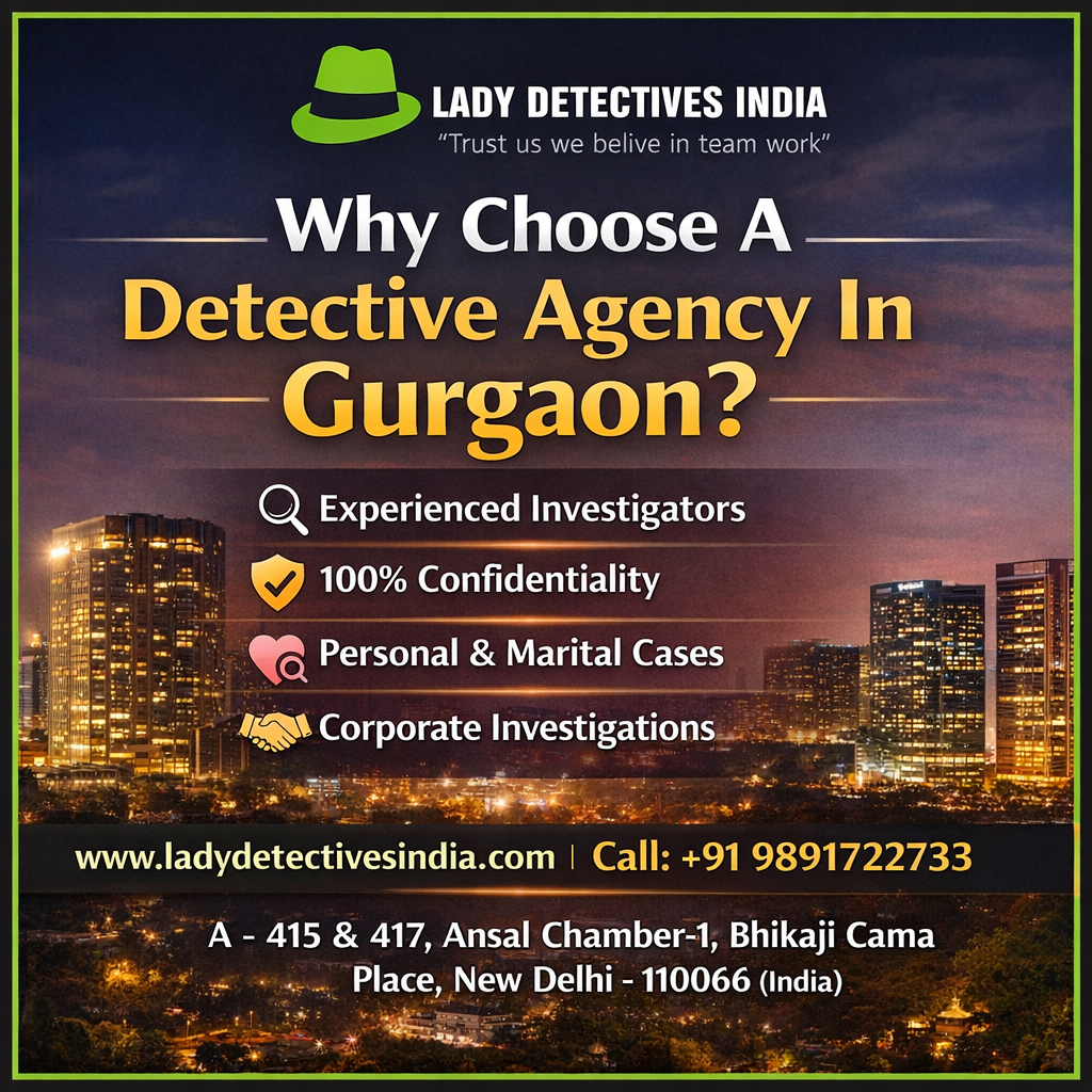 Hiring a Detective agency in Gurgaon helps individuals and businesses solve sensitive cases with complete confidentiality and professionalism. Services include background checks, matrimonial investigations, surveillance, and corporate inquiries handled by skilled experts. A trusted Detective agency in Gurgaon uses advanced techniques to gather accurate information efficiently. Lady Detectives India offers reliable and discreet investigation services, ensuring clients receive trusted support while handling personal and corporate matters with privacy, accuracy, and professionalism.